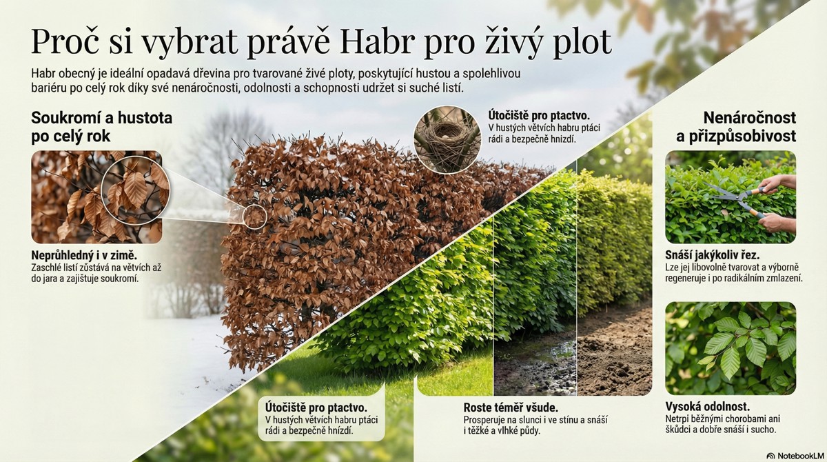 Habr netrpí chorobami, nenapadají ho zásadní škůdci a není tak choulostivý jako túje. Sázka na jistotu na desítky let.